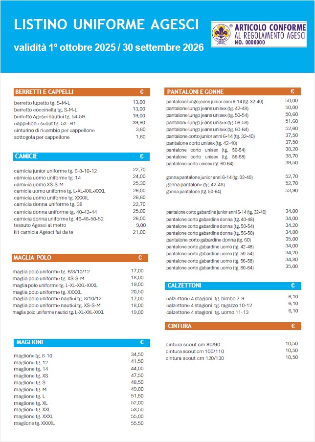 listino uniforme AGESCI